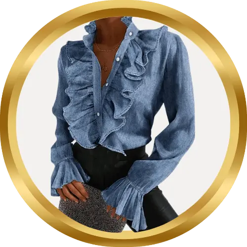 Blusa Jeans Com Babados